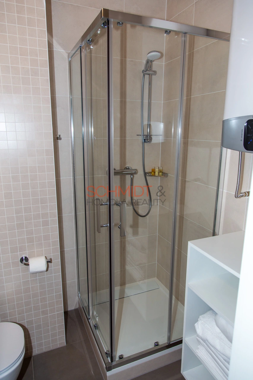 Nabízíme k pronájmu plně vybavený apartmán o dispozici 1+1 a výměře 35 m²,umístěný ve třetím nadzemním podlaží bytového domu v Rezidenci Pod Zámkem v Purkyňově ulici. K bytu náleží sklepní vinná kóje, skladová koje a vyhrazené parkovací stání. Přímo z bytu je výhled na jednu z dominant města Svatý Kopeček. Bytový dům před šesti lety prošel rozsáhlou rekonstrukcí. K vytápění slouží elektrické nástěnné radiátory, k ohřevu vody elektrický bojler. Nájemné činí 12.500,- Kč plus služby 3.600,- Kč. Majitelka vyžaduje vratnou kauci ve výši dvou nájmů, provize RK je ve výši jednoho nájmu.