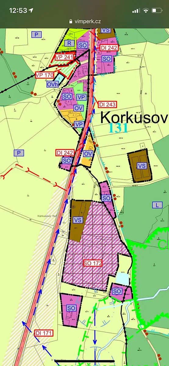 CHKO Šumava- osada Korkusova Huť pod Boubínem a blízko Kubova Huť,pozemek s krásným výhledem na Boubín a krásným okolím,obklopena lesy. Osada leží nad Vimperkem a v blízkosti je Kubova Huť a CHKO Šumava.Jedná se o prodej pozemku na který je zpracována studie na rozparcelovaní na 12 stavebních parcel.Na celé území je zpracována a odsouhlasena územní studie na výstavbu domů k bydlení či rekreaci,která může být využita pro developera. Pozemek je vcelku,na konci obce a přímo navazuje na komunikaci Vimperk-Strážný.V místě přípojky elektro,vody,připraveno na ČOV.Blízko na centrální Šumavu.Celková plocha je 28 000 m2.