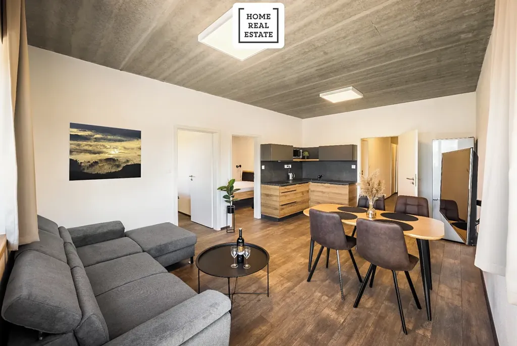 Samotné apartmány jsou kompletně vybaveny designovým nábytkem včetně veškerého vybavení od kvalitních kuchyňských spotřebičů až po závěsy a příbory. Punc kvality a luxusu podporuje i architektonické zpracování podhledů s betonovou stěrkou. Apartmány jsou připraveny ihned Vám poskytnout svůj komfort, aniž by bylo potřeba cokoliv zařizovat.
