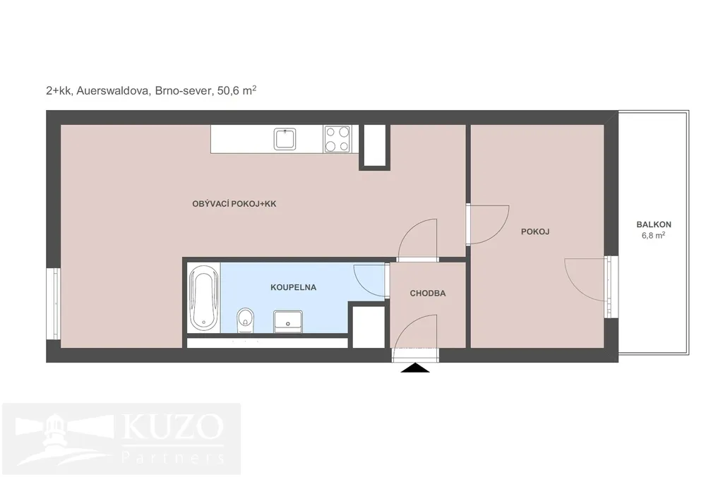 Pronájem bytu 2+kk, Brno, Auerswaldova, 51 m2 (ID: 1984743)