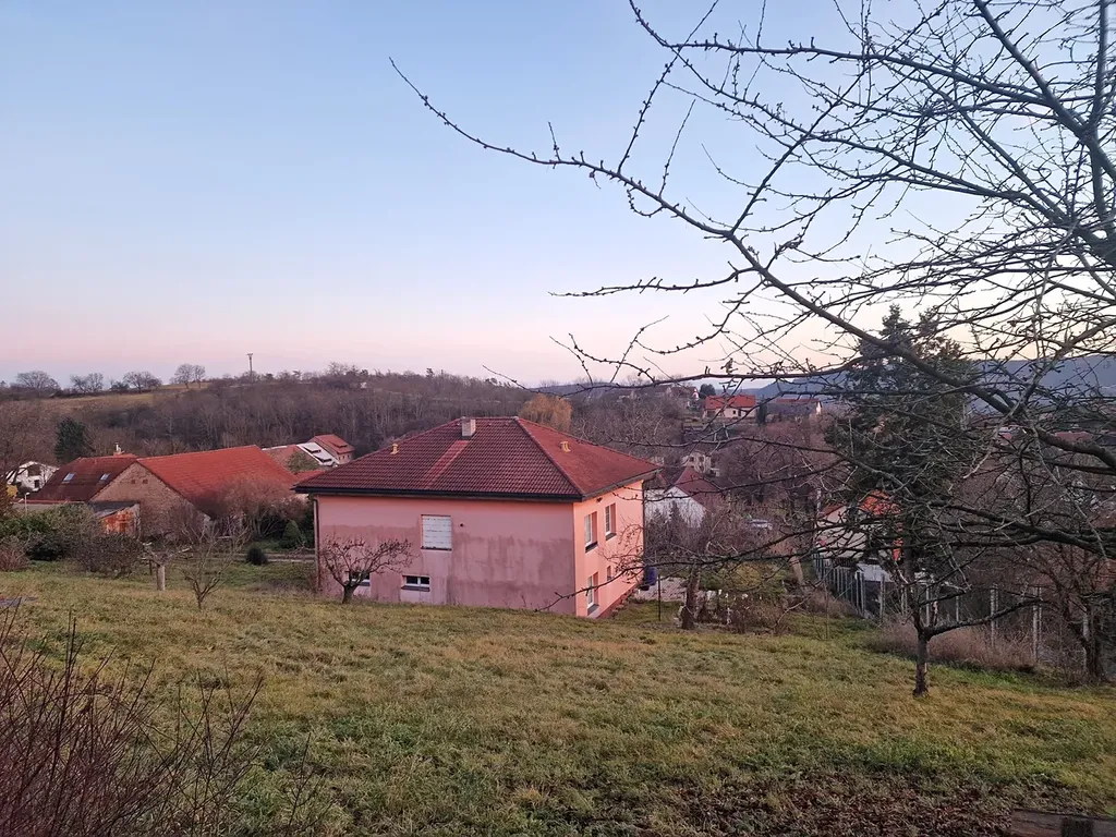 Dům se nachází v centru obce, kdy ze svažitého pozemku, jak jsem již popsal, je opravdu krásný výhled do širokého okolí. Spádovým centrem jsou 4km vzdálené Černošice.
