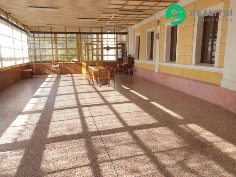 Nabízíme k prodeji ubytovací areál, stojící na překrásném místě uprostřed přírody, přitom jen 1,5 km od historického náměstí v Novém Městě nad Metují. Hlavní budova má 30 pokojů, 2 sály, nezařízenou restauraci s místnostmi pro přípravu a skladování pokrmů a další společenské a technické zázemí. Součástí nabídky je také další, plně podsklepený cihlový bytový dům, nacházející se hned vedle, se čtyřmi samostatnými byty a třemi garážemi. Jeden byt (2+1, 60m2) je po částečné rekonstrukci, další byty (1+1-52 m2, 3+1-92 m2, 3+1-95 m2) na renovaci čekají. Dále k nemovitosti náleží také dvě další budovy jedna slouží jako sklad, druhá disponuje vinárnou, saunou, dílnou a garáží. To vše na vlastním rozlehlém pozemku 9.376 m2 s vlastními parkovacími plochami z nichž jednu lze využít jako sportovní hřiště (tenis, volejbal atd.). Je nutno podotknout, že hlavní budova není kulturní památka a prošla v průběhu let několika rekonstrukcemi (např. v roce 1986 byla kompletně vyměněna elektroinstalace (rozvody v mědi), okna, umyvadla na pokojích atd.), ale pokud by se měla užívat komerčně, je nutná její další revitalizace.