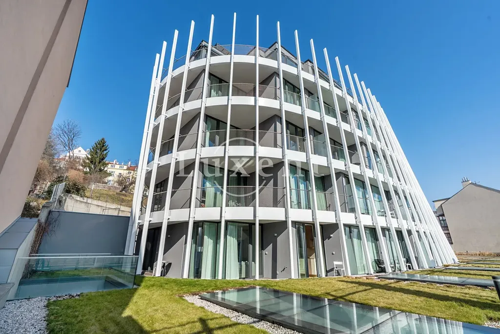 Nabízíme k pronájmu kompletně zařízený byt 2+kk s terasou a zahradou o celkové užitné ploše 180 m2 ve 2. patře novostavby rezidenčního projektu s výtahem a množstvím nadstandardních doplňkových služeb jako je recepce, bazén, wellness a rozlehlá společná zahrada v uzavřeném vnitrobloku. K bytu lze za příplatek pronajmout parkovací stání v podzemních garážích.