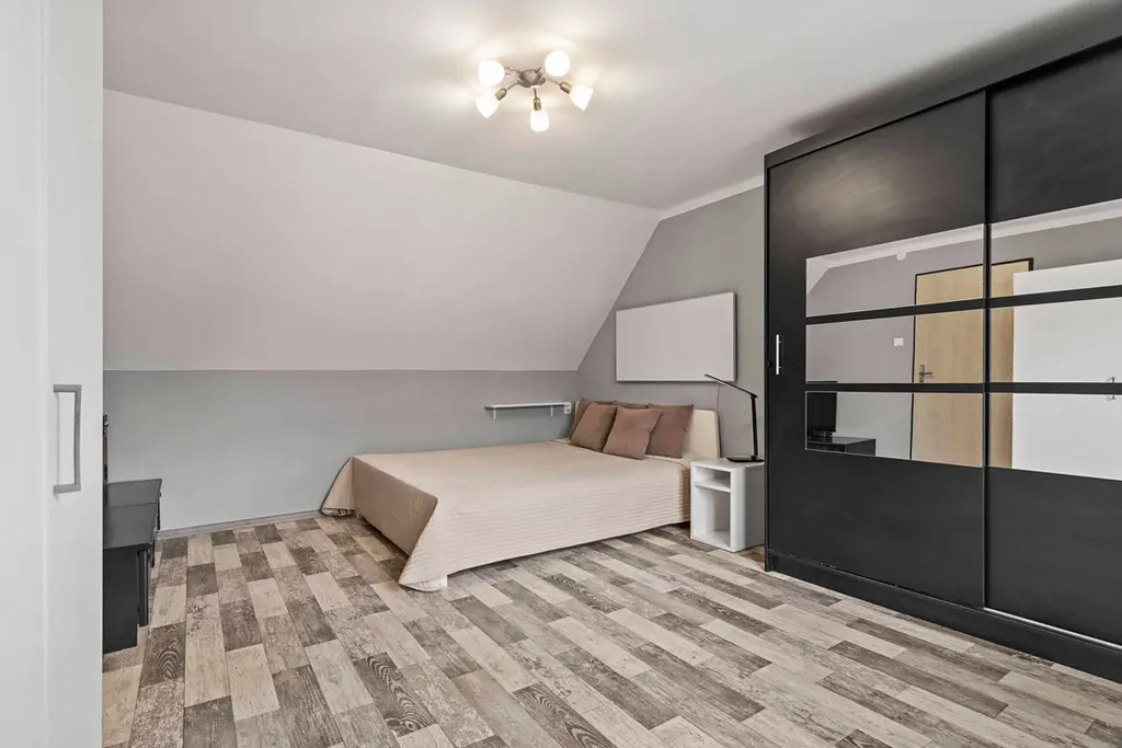 Dispozice domu je řešena velmi účelně. V přízemí se nachází obývací pokoj, kuchyně a na chodbě komora vhodná jako praktický úložný prostor. V patře jsou dvě ložnice, které poskytují dostatek soukromí a klidné zázemí pro rodinu.