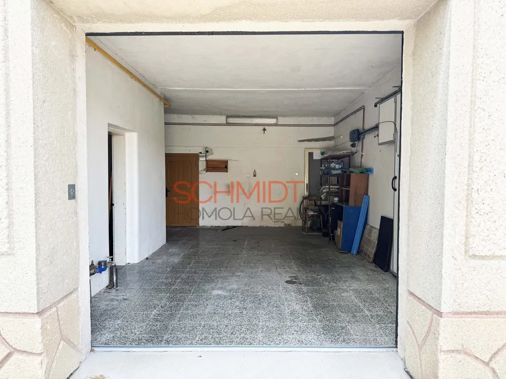V přízemí domu jsou kromě prostorné garáže dvě místnosti a wc. Nabízí se zde možnost vybudování samostatné bytové jednotky, případně zřízení komerce (kancelář, kadeřnictví, kosmetika, vinotéka). Skrze garáž je dále vstup do velkého vinného sklepa o délce 18 metrů.