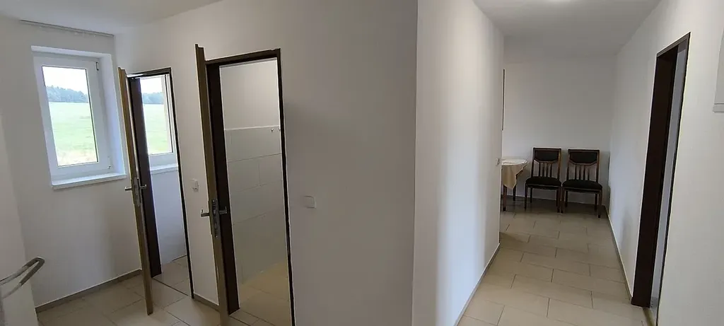 Plastová okna, zateplená fasáda, zděné bytové jádro se sprchovým koutem.