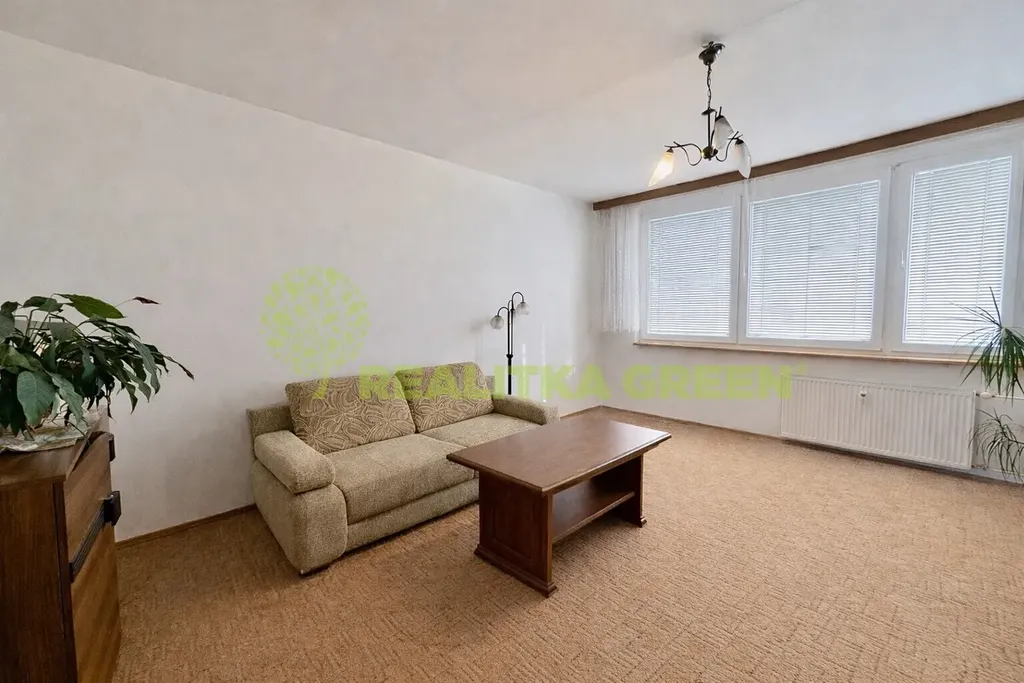 Dispozičně: prostorná vstupní chodba se šatnou, kuchyň s jídelním koutem, kuchyňská linka s elektrickým sporákem a elektrickou troubou, obývací pokoj, ložnice se vstupem na lodžii odkud je krásný výhled na město a pokoj, který lze využít jako dětský pokoj. Koupelna se sprchovým koutem a samostatné WC.