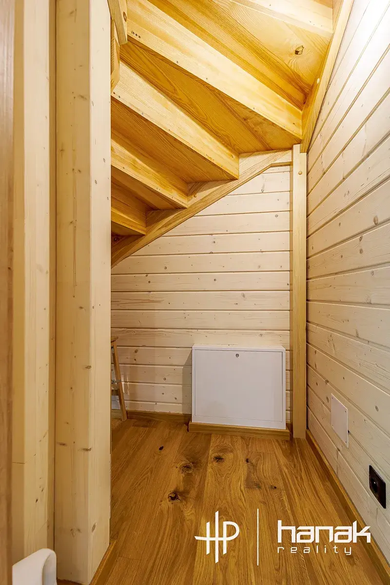Chata je vystavěna z rakouského sušeného lepeného hranolu tl. 12 cm s dřevovláknitou izolací, která je naimpregnována prémiovou lazurou Adler Silverwood a postavena na zděné obvodové konstrukci.