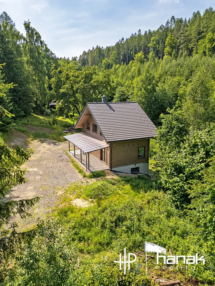 Vážení klienti, představujeme Vám krásnou dřevostavbu nízkoenergetické stavby rodinné rekreace s dispozicí 4+kk v klidném prostředí lesa nedaleko obce Líšnice.