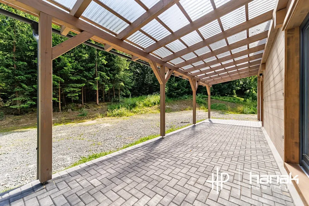 Předmětem prodeje je právě dokončená a zkolaudovaná nízkoenergetická dřevostavba o užitné ploše 121 m2 na krásném pozemku o výměře 2076 m2.