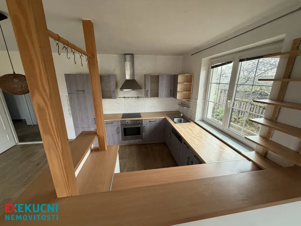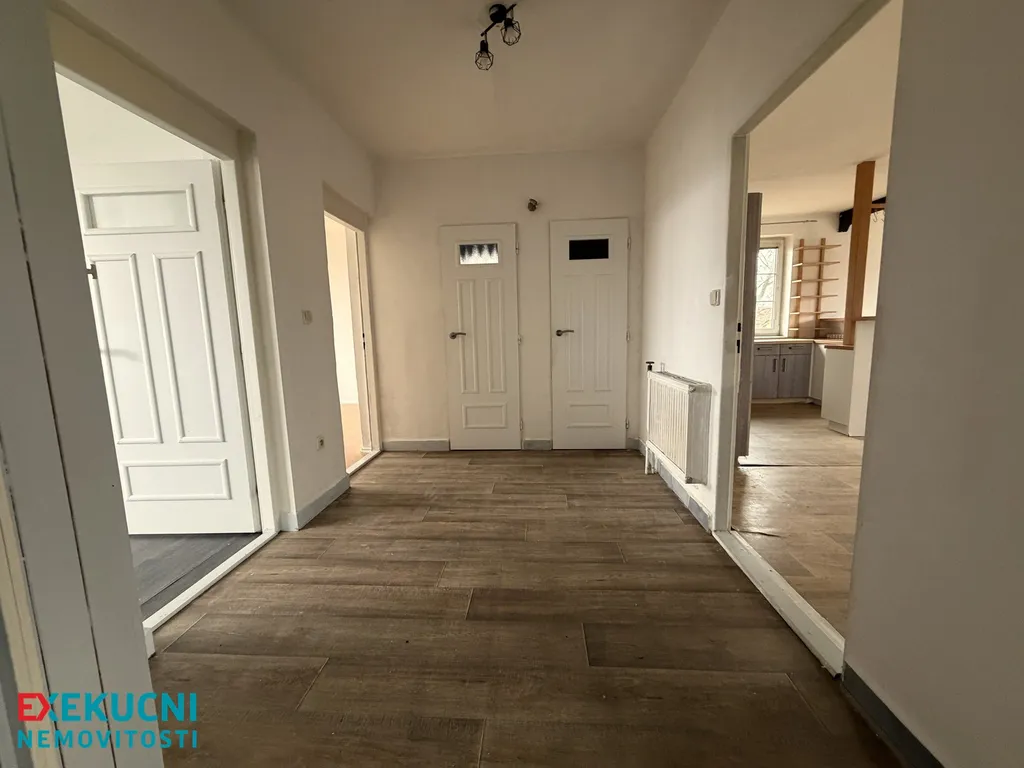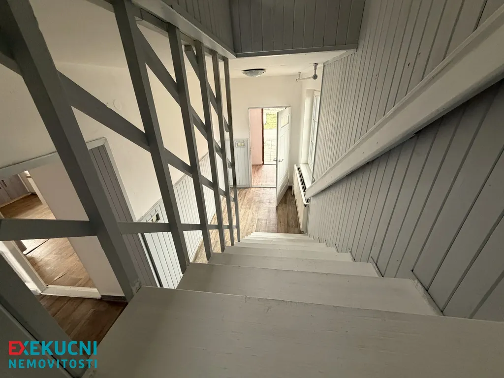Dům o dispozici 5+kk nabízí dostatek místa pro pohodlné bydlení vícečlenné rodiny. V přízemí najdete světlý obývací prostor s kuchyní, dva prostorné pokoje, koupelnu s vanou a samostatné WC.