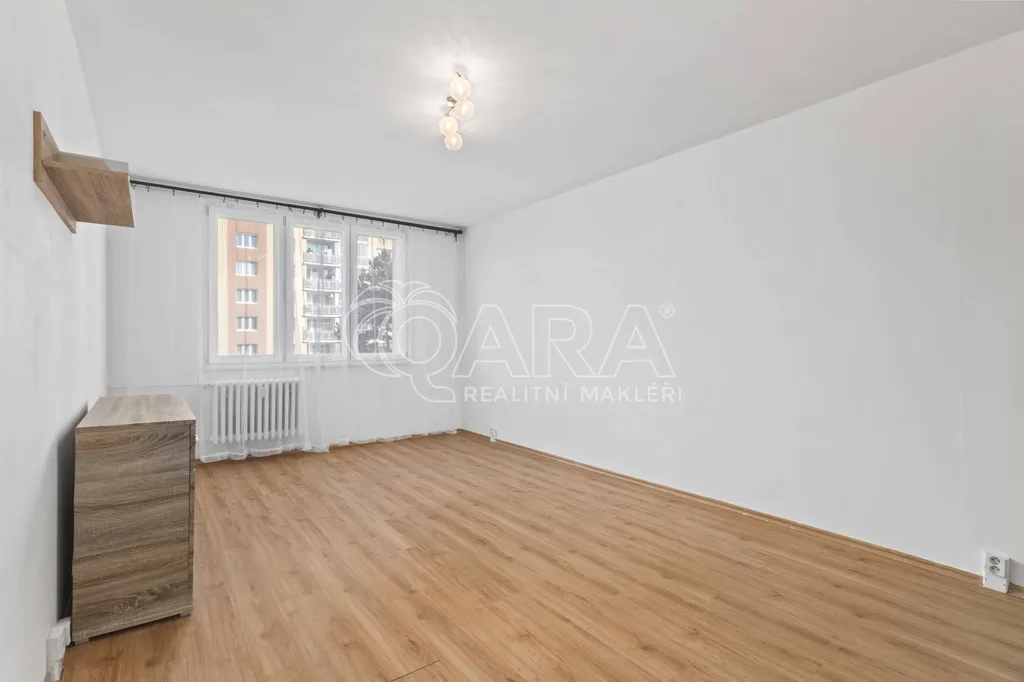 Byt o dispozici 2+1 má celkovou plochu 61 m2 a k tomu navíc prostornou lodžii (5,4 m2), kde si můžete v klidu vychutnat kávu. Nachází se ve 4. patře panelového domu s výtahem. Dispozičně je byt řešen velmi prakticky – v kuchyni najdete linku se sporákem, troubou a lednicí. V koupelně je k dispozici sprchový kout a místo na pračku. Výhodou je dostatek úložného prostoru díky vestavěným skříním v předsíni i v ložnici. K bytu náleží také sklepní kóje.