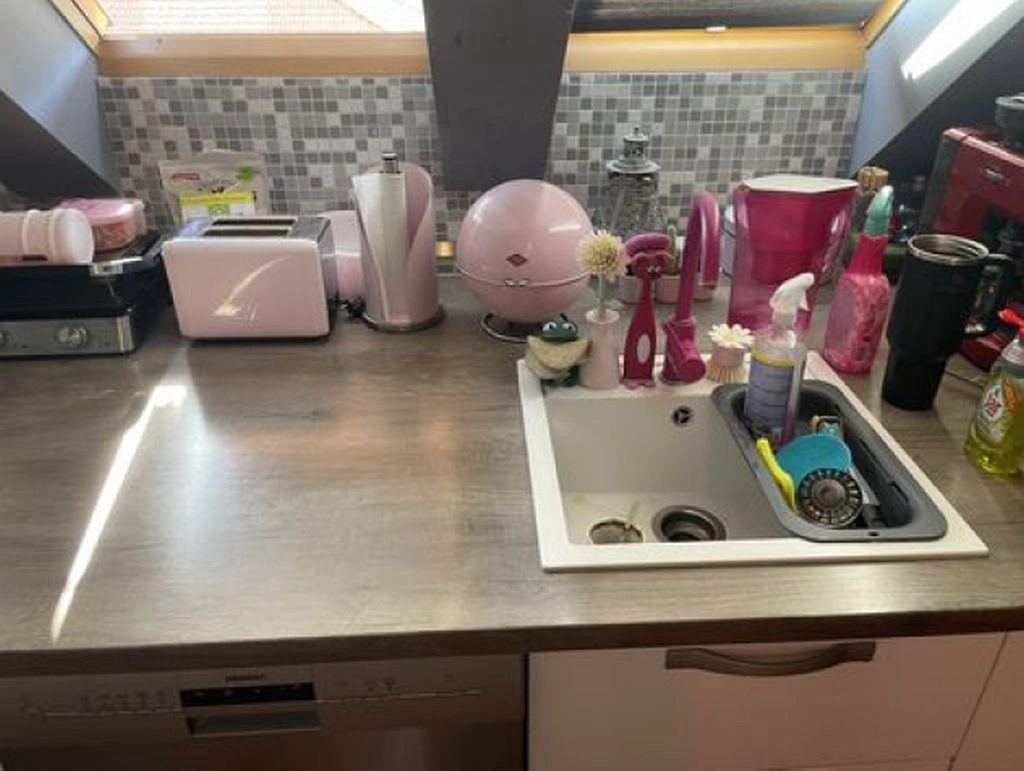 Jedná se o bytovou jednotku 2,5+kk v podkroví bytového domu. V bytě se nachází: koupelna (5,73 m2), zádveří (3,18 m2), WC (1,75 m2), kuchyň - kk (11,88 m2), pokoj (20,57 m2), obývací pokoj (36,35 m2), prostor obou podest (6,82 m2) a pokojík (6,38 m2). Okna jsou dřevěná střešní a plastová. Podlahy jsou z dlažby a palubek. Kuchyň je s linkou, varná deska. Koupelna s vanou, umyvadlo. Vytápění je ústřední etážové s plynovým kotlem, vč. teplé vody.