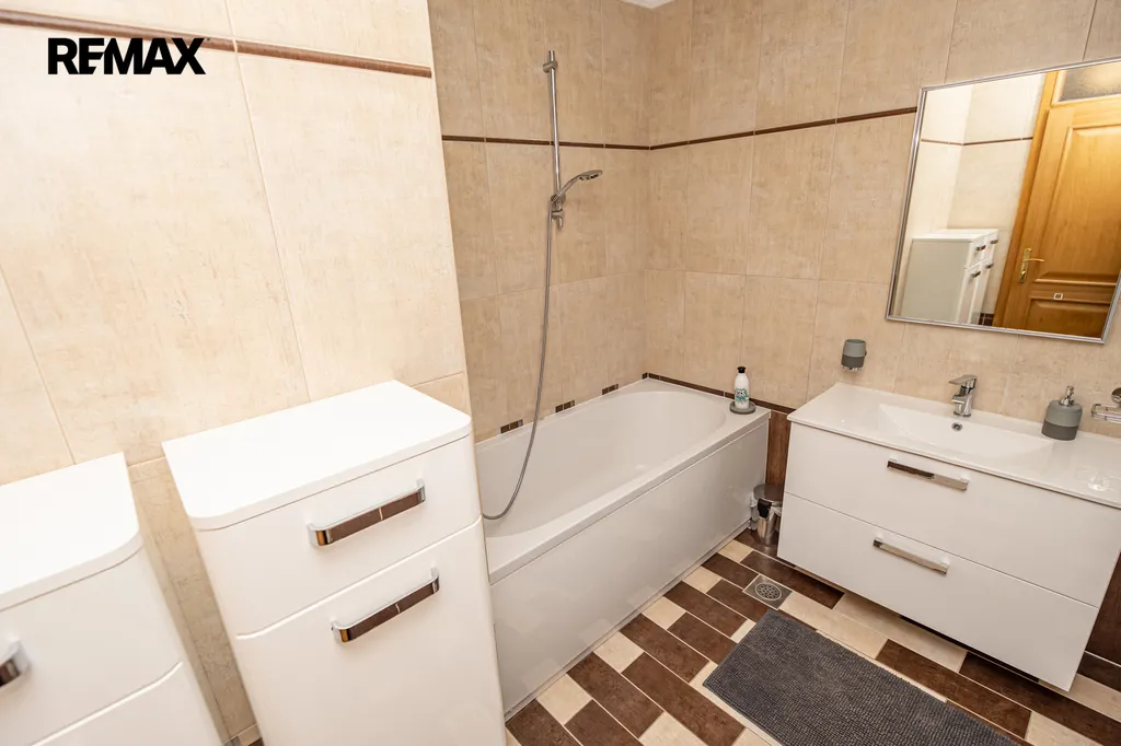 • Koupelnu s vanou a pračkou.