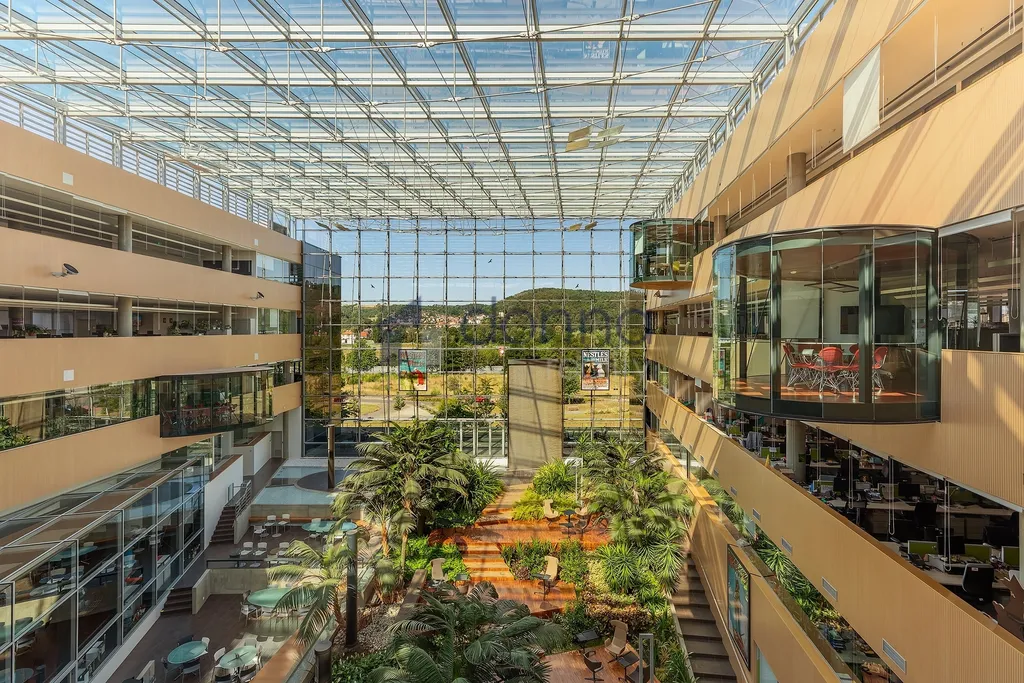 Prosklená budova ve tvaru písmene U s pěti nadzemními a dvěma podzemními podlažími. V budově nyní nabízíme k pronájmu kancelářské jednotky v 5.NP o rozloze od 250 m2 do 1365 m2. Díky efektivnímu půdorysu můžete využít stávající dispozice prostor, nebo si je flexibilně přizpůsobit svým představám. Aktuálně nabízené kanceláře jsou k dispozici ve velmi vysokém standardu včetně zdvojených podlah, LED osvětlení. Dominantou celého prostoru je atrium s bohatou zelení a vodním prvkem. K pracovnímu komfortu přispívá také jídelna přístupná všem nájemcům a kolárna.