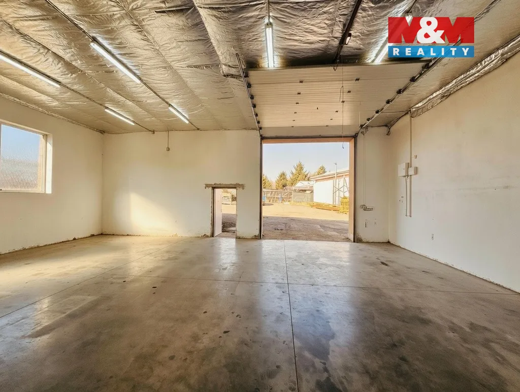 Hala je ideální pro lehkou výrobu, servisní zázemí nebo skladování. Velkou výhodou je kvalitní epoxidová podlaha, která zajišťuje vysokou odolnost, bezprašnost a snadnou údržbu. Objekt disponuje zatepleným stropem, což výrazně přispívá k lepší tepelné regulaci a úspoře energií. K dispozici je také plynovodní přípojka pro možnost efektivního vytápění. Manipulaci se zbožím a technikou usnadňují elektrická sekční vrata o rozměrech 3,46 m (šířka) × 3,88 m (výška).