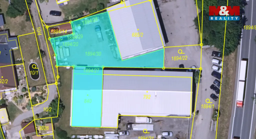 Příjezd k objektu je zajištěn po kvalitní asfaltové komunikaci a je plně uzpůsoben pro kamionovou dopravu (TIR) i dodávky. Před halou se nachází zpevněná ostatní plocha, kterou lze využít pro parkování nebo jako manipulační prostor.