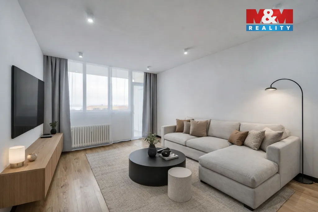 Byt je situován ve 4. nadzemním podlaží panelového domu s výtahem a nabízí komfortní užitnou plochu cca 84 m² + lodžie.