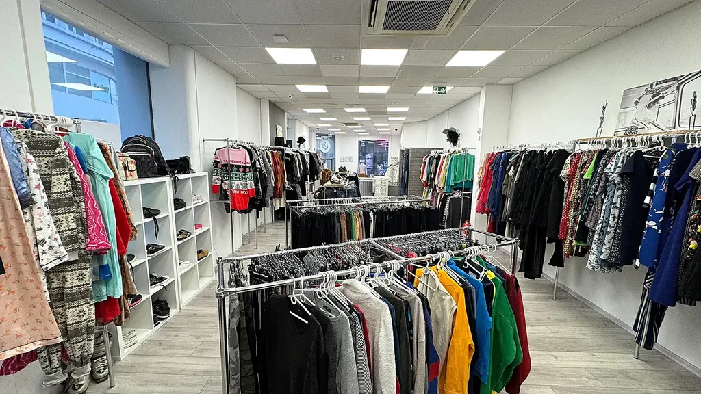 V 90. letech se původně jednalo o dvě obchodní jednotky, které jsou nyní sloučené v jednu velkou rohovou prodejnu, která má vstup z nároží domu. Prodejna má dva výkladce do ulice Kobližná a šest výkladců do ulice Vachova. Vytápění je vlastním plynovým kotlem.