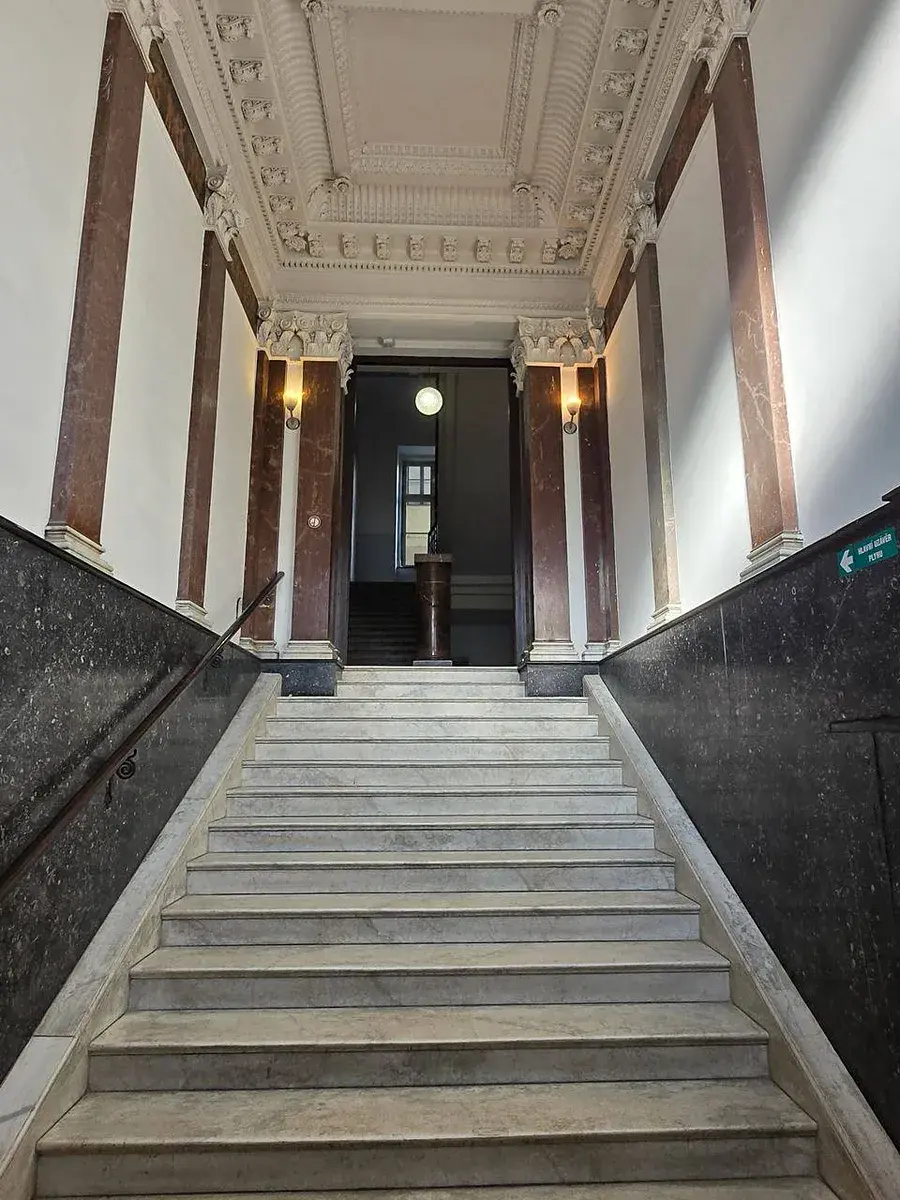 Kancelářský celek se nachází ve zvýšeném přízemí čtyřpodlažního cihlového domu. Prostory jsou ve velmi dobrém stavu a nabízejí vysoký standard pracovního prostředí. Kanceláře jsou světlé a vzdušné, orientované na jih s výhledem do parku, a díky vysokým stropům poskytují příjemnou pracovní atmosféru.