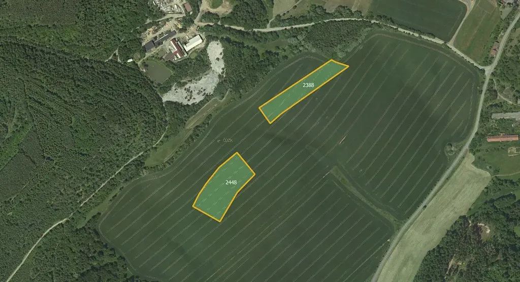 Jihozápadně od obce se nacházejí parcely orné půdy ležící v jednom zemědělském bloku. Orná půda má v rámci katastru nadprůměrnou výši BPEJ. Druhým směrem od obce leží pozemek trvalého travního porostu a součástí prodeje je také menší vodní plocha.
