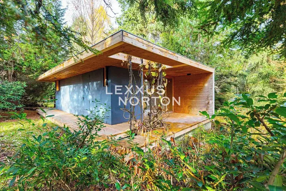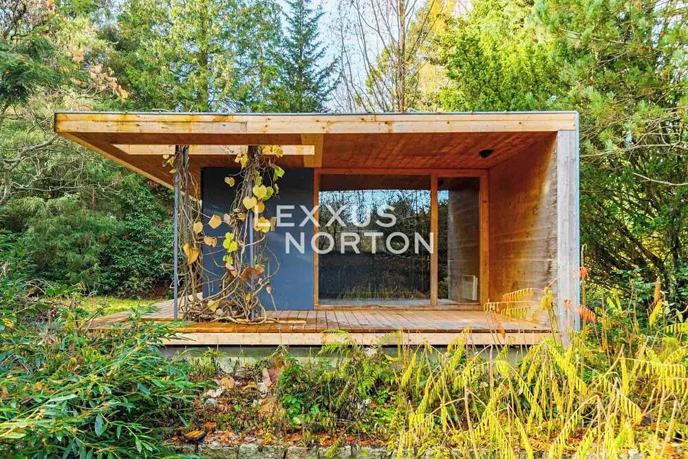 Pozemek s plochou 1.400 m2 s dřevostavbou zahradního domku – ateliéru, obklopeného vzrostlou přírodní zahradou. Zahradní domek s plochou 39 m2 nabízí díky chytré vnitřní posuvné stěně variabilní uspořádání interiéru. Ten může sloužit jako jednoprostorový rozměrný open space ateliér s kuchyňským koutem, anebo jako samostatný dům 2+kk s příslušenstvím. Jedná se o nemovitost vysoké estetické kvality a nadčasového řešení, která díky na východ a západ orientovaným proskleným plochám v maximální míře komunikuje s lesní zahradou, do které byla vsazena. Je zde k dispozici architektonická studie na rozšíření objektu až na trojnásobek současné plochy. Pozemek má samostatný přístup z ulice U Výmoly, což platí i pro napojení na inženýrské sítě. Nemovitost umožňuje široké spektrum budoucího využití, ať se již bude jednat o její používání v současném uspořádání a objemu, až po možnou dostavbu a navýšení ploch objektu a její konverzi do podoby plnohodnotného rodinného domu. Zásadní přidanou hodnotou této nemovitosti zůstává zahrada. Ta akcentuje blízký les, vzrostlé stromy jsou zde vhodně doplněné okrasnými křovinami a parkovou zelení, nechybí zde otevřené travnaté plochy, které jsou vystřídány okrasnými zákoutími, to vše stále v poněkud nespoutaném přírodním stylu.