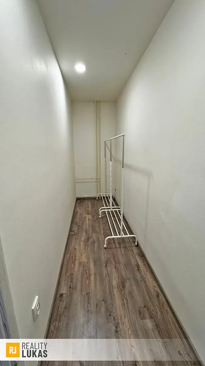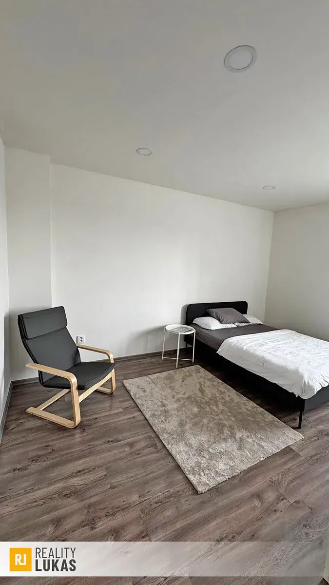 • byt je z větší části zařízený - kuchyňský stůl, židle, botník, pračka, lednice, postel, 2x stojan na oblečení, komoda na oblečení, křeslo, odkládací stolek u postele