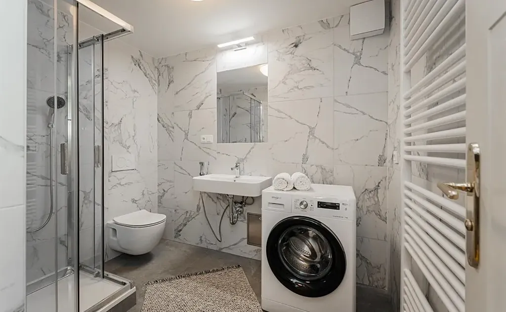 Byt zaujme kvalitním provedením, citlivě zvolenými materiály a příjemnou atmosférou. Je vybaven moderní kuchyňskou linkou s vestavěnými spotřebiči včetně myčky nádobí. Interiér je dále zařízen stylovým nábytkem dle fotografií a součástí vybavení je také pračka umístěná v koupelně.