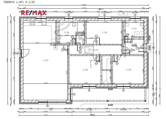 + zařizovací předměty, podlahy, dveře, dlažba, obklady