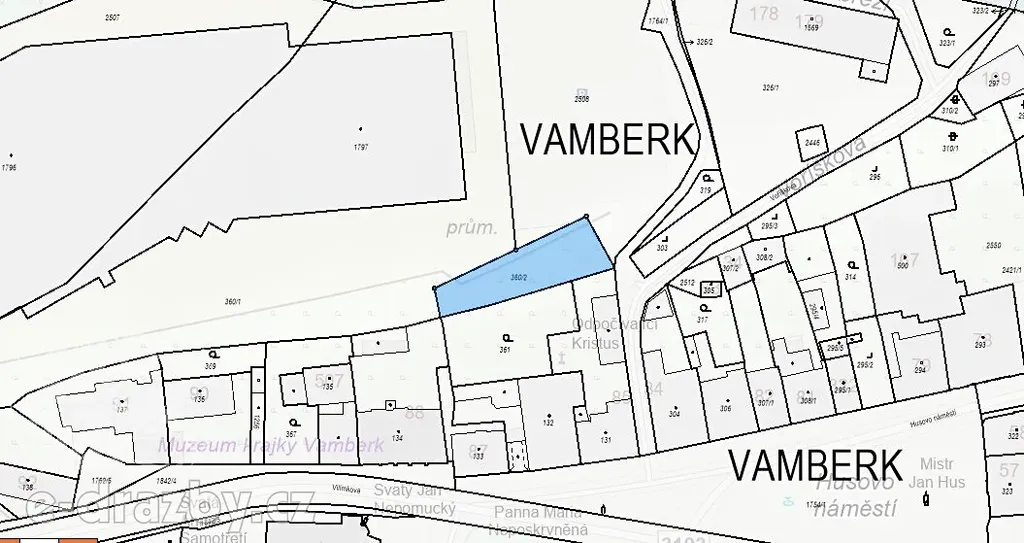 Nabízíme k prodeji formou elektronické licitace pozemek o výměře 516 m2. Pozemek se nachází v obci Vamberk. V blízkosti centru města, cca 100 m od náměstí. Pozemek sousedí s velkým průmyslovým areálem PEWAG.
