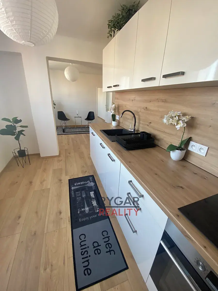 Námi nabízený byt 3+1/B, 60 m2 (byt 56,5 m2 + balkon 2,36 m2 + sklep 1,5 m2) je situován v 5.NP/z 8.NP s výtahem, součástí prodeje je sklep (drátěná kóje 1,5 m2) v suterénu domu, odkud je vstup do zahrady. Byt je orientován na JV a Z, je velmi světlý, po částečné rekonstrukci a ihned k nastěhování (zánovní koupelna, plastová okna, nově výmalby, plovoucí podlahy, vnitřní dveře, dlažba, nově instalovaná kuchyňská linka se zabudovanými elektrospotřebiči). Topení dálkové ústřední. Měsíční poplatky 4 253 Kč komplet, navyšování poplatků se neplánuje.
