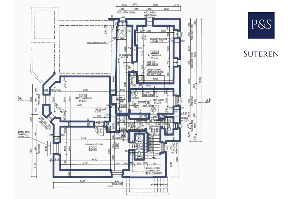 • Suterén: pokoj pro správce a technické zázemí (prádelna).