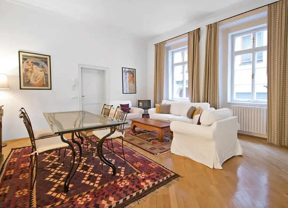 Luxusní byt k pronájmu na Malé Straně v barokním činžovním domě s výtahem a impozantním dvorem s kašnou, který se nachází jen pár kroků od Karlova mostu a Malostranské mostecké věže. Díky své jedinečné atmosféře nabízí bydlení s nezaměnitelným geniem loci pro klienty, kteří nechtějí slevit ze svého vysněného bydlení. Byt prošel nadstandardní rekonstrukcí s ohledem na původní prvky.