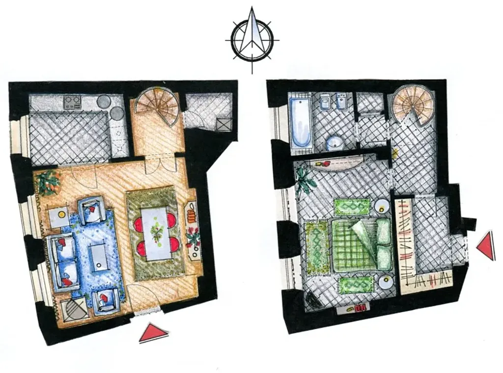 Dvoupodlažní byt je dispozičně řešen jako 2+1 s příjemným oddělením soukromé a společenské části.