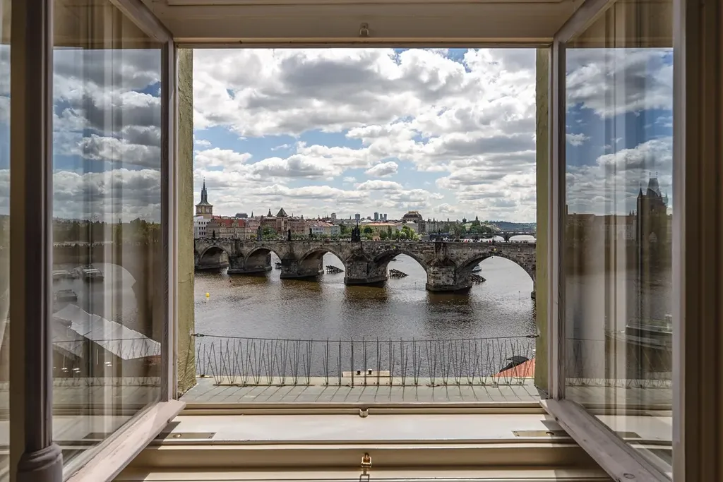 Výhledy: Přímý pohled na Karlův most a Pražský hrad – jedny z nejkrásnějších scenérií v Praze.