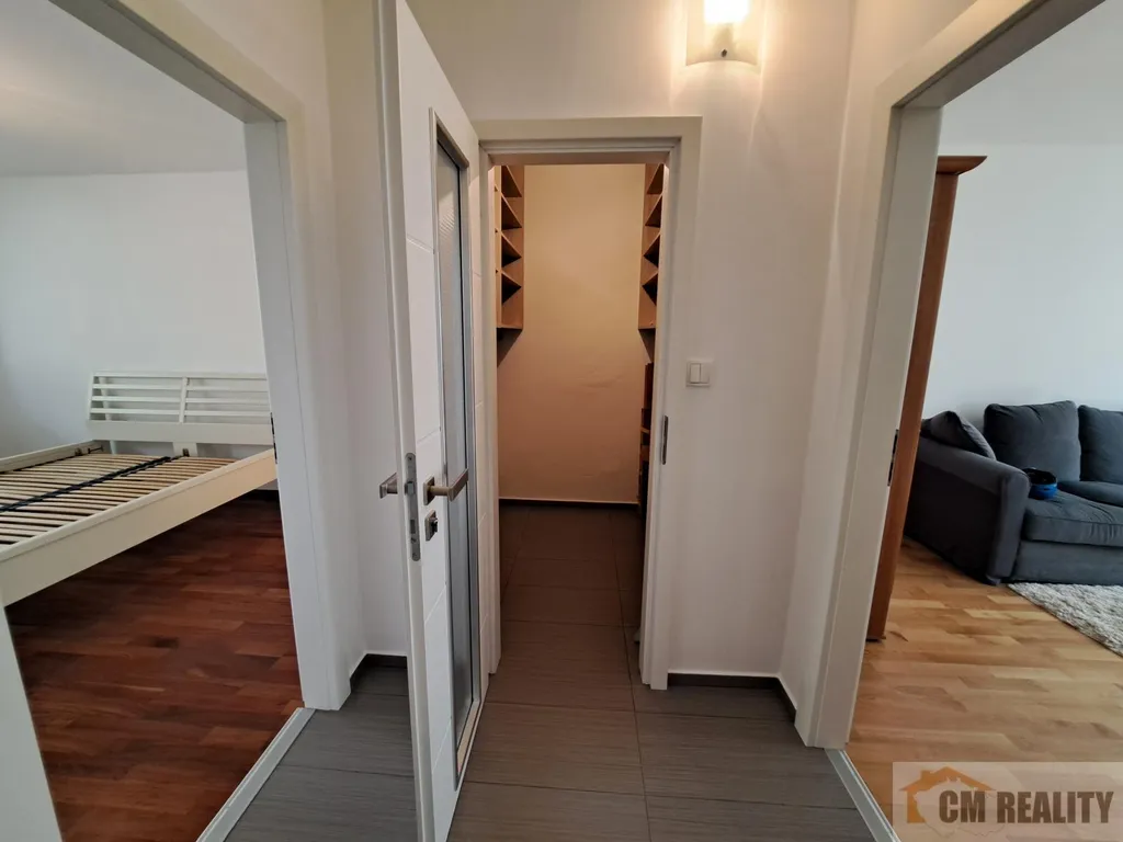Byt je po celkové rekonstrukci. K dispozici je nová kuchyňská linka s vestavnými spotřebiči zn. Siemens, včetně lednice a myčky. V koupelně zůstává pračka. Pokoje jsou neprůchozí. Mezi pokoji je k dispozici šatna. V pokojích může zůstat nábytek, který je vidět na fotografiích (kromě postele v ložnici). Teplo a teplá voda je centrální.