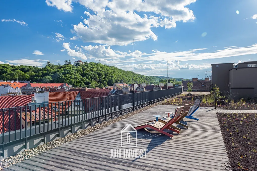- Klidný vnitroblok a střešní zahrada s relaxačními zónami