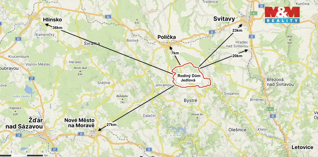 Je zde také možnost připojení plynu. Výhodou je velmi dobrá dopravní dostupnost – autobusová zastávka se nachází přímo naproti domu a město Polička je vzdálené pouhé 4 minuty jízdy.