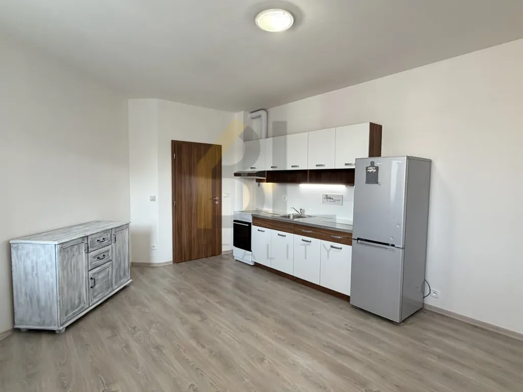 - prostorná kuchyně s obývací částí: kuchyňská linka s el. sporákem a troubou, lednice s mrazákem, komoda a přímý vstup na balkón.