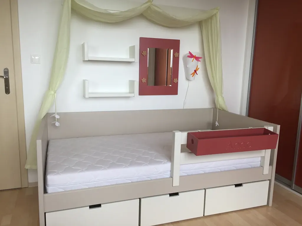 Exkluzivně nabízíme k dlouhodobému pronájmu krásný a velmi prostorný byt 3+kk s terasou, sklepem a garážovým stáním o celkové ploše 139 m2 v ulici Laudonova v pražských Štěrboholech ve třetím patře třípatrové novostavby s výtahem. Dům je součástí developerského projektu Štěrboholské zahrady a nachází se na velmi klidném místě vedle původní zástavby rodinných domů. Budova je obklopena velkou soukromou zahradou se spoustou zeleně a k bytu navíc patří vlastní prostorná terasa navazující na obývací pokoj s kuchyní. Byt je vybaven moderní kuchyňskou linkou ze studia Sykora se spotřebiči Siemens. Součástí bytu je dále obývací stěna s televizí Samsung a čtyři vestavěné skříně. V bytě může zůstat také další nábytek včetně kompletně zařízeného dětského pokoje pro dvě děti. Parkovat je možné před domem nebo v suterénu budovy, kde je k dispozici jedno garážové stání a sklep, jejichž pronájem je již zahrnutý v ceně. Ve Štěrboholech se nachází mateřská škola, základní škola a obchodní centrum Europark, Retail Park a Fashion arena. V blízkosti bytu je autobusová zastávka Štěrboholy, odkud jízda na stanici metra Depo Hostivař trvá 10 minut. V pěší dostupnosti je také zastávka autobusu Radiová s přímým spojením na Prahu 4 a Prahu 9. Rovněž je možné využít vlakové spojení na Masarykovo nádraží z vedlejších čtvrtí Kyje a Dolní Počernice. Byt bude volný k nastěhování od 1.6.2026 a je určen pro maximálně 4 osoby, zvířata nejsou povolena.