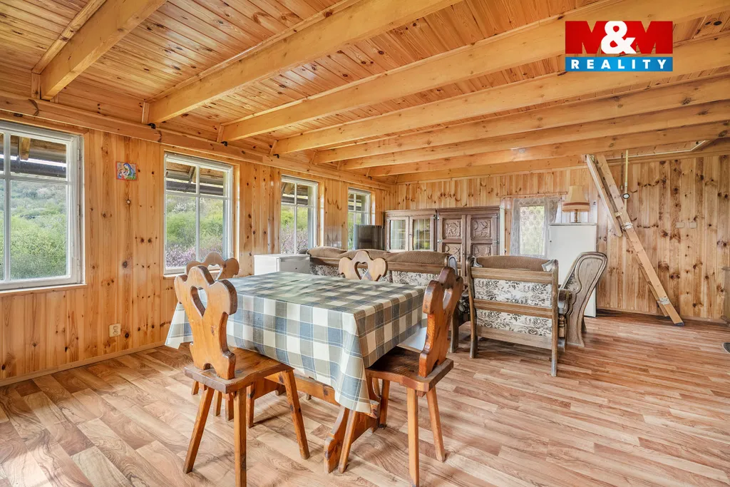Nabízíme k prodeji kouzelnou dřevěnou chatu, s přiděleným číslem evidenčním, v katastrálním území Třebenice, ideální pro milovníky přírody a relaxace. Tato samostatně stojící nemovitost na polosamotě nabízí 2 nadzemní podlaží, s užitnou plochou 50 m². Chata je ve velmi hezkém stavu. Je zde nová koupelna s menší vanou a wc. Elektřina je zde samozřejmostí. Voda je čerpána z vrtané studny a odpady jsou svedeny do nově instalovaného septiku. Jsou zde dvě terasy, které poskytují úchvatný výhled na zříceninu hradu Košťálov. Na pozemku o rozloze 6.401 m² se nachází vinohrad s červenou a bílou révou, ovocné stromy jako broskvoně, jabloně, slivoně a v neposlední řadě fíkovníky. Tato nemovitost je skvělou investicí pro ty, kteří hledají klid na relaxaci a zahradničení. Obec Třebenice disponuje veškerou občanskou vybaveností. Skvělá dostupnost na nájezd na dálnici, do Ústí nad Labem a nebo Prahy, kde jste za necelou hodinu. Neváhejte a domluvte si prohlídku ještě dnes, opravdu to stojí za to.