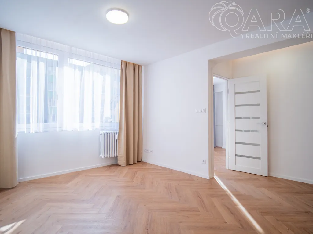Okna jsou orientována jižním směrem do "dvora", kde je minimální provoz. Kuchyň je plně funkční (včetně lednice/mrazáku, myčky, sporáku, trouby i digestoře. Jádro je vyzděné a nabízí koupelnu se sprchovým koutem a toaletou. Bonusem je připojená pračka mimo koupelnu.