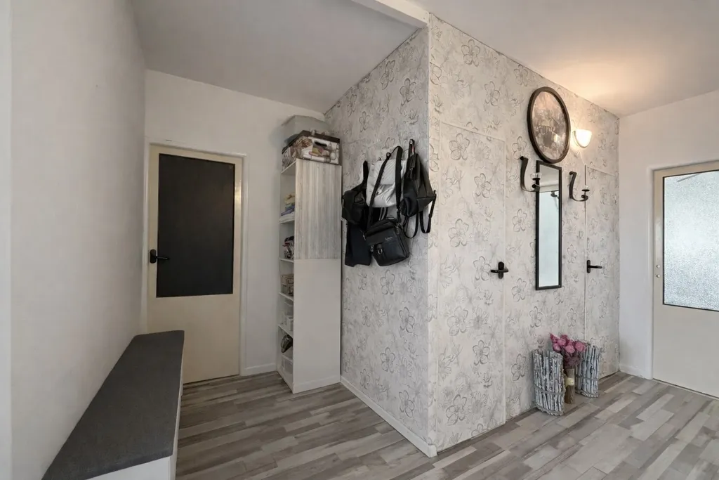 Byt je v udržovaném stavu a nabízí příjemné bydlení s dostatkem prostoru pro rodinu i jednotlivce. Dispozice zahrnuje obývací pokoj s přístupem na lodžii, dvě samostatné ložnice, kuchyň, koupelnu s vanou, samostatné WC a praktickou vstupní chodbu s úložným prostorem. K bytu náleží také sklepní kóje a komora na patře, které poskytují další úložné možnosti.