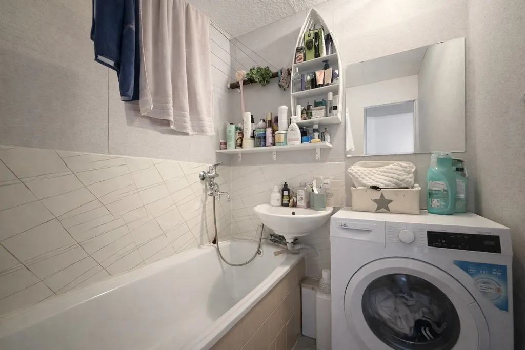 Koupelna je v původním umakartovém jádru a větší část bytu je vhodná k rekonstrukci, což může být výhodou pro ty, kteří si chtějí bydlení upravit přesně podle svých představ.