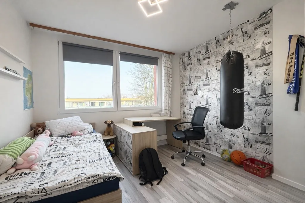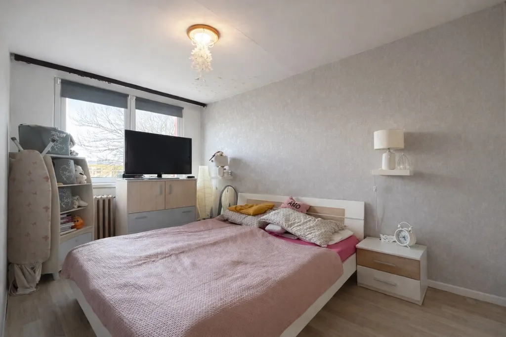 Interiér působí světle a vzdušně, velká okna zajišťují dostatek denního světla a zároveň nabízejí příjemný výhled do okolí. Byt je vhodný jak k okamžitému bydlení, tak i jako investiční příležitost.