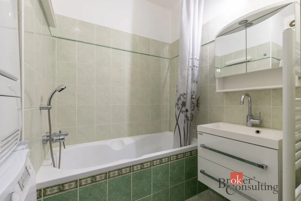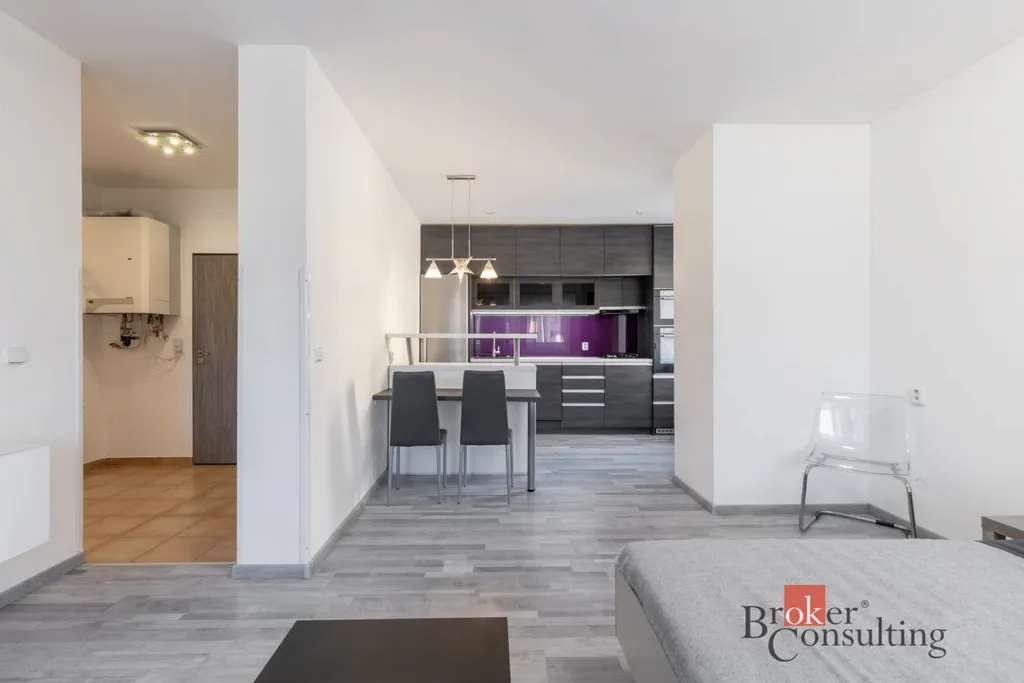 Byt se pronajímá tak, jak jde vidět na fotkách, kromě televize. Tj. lednice, mraznička, myčka, varná deska, trouba, mikrovlná trouba a digestoř, barový pult se židlemi. K bytu náleží kóje, která je situovaná vedle bytu a je sdílená pro celé patro. Nájemník bude mít jednu polici.