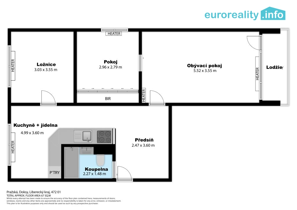 Prodej bytu 3+1 po kompletní rekonstrukci, 64,4 m² + lodžie, Doksy – ul. Pražská