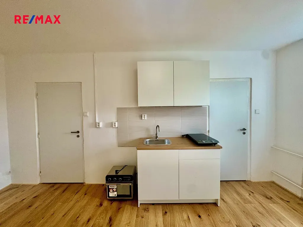Hlavní obytný prostor s kuchyňským koutem působí vzdušně a díky velkému oknu je krásně prosvětlený denním světlem. Kuchyňský kout je prakticky řešený a poskytuje zázemí pro každodenní vaření.