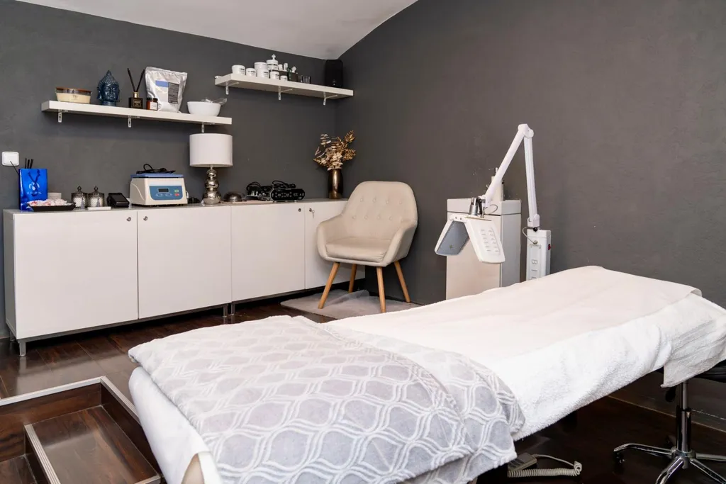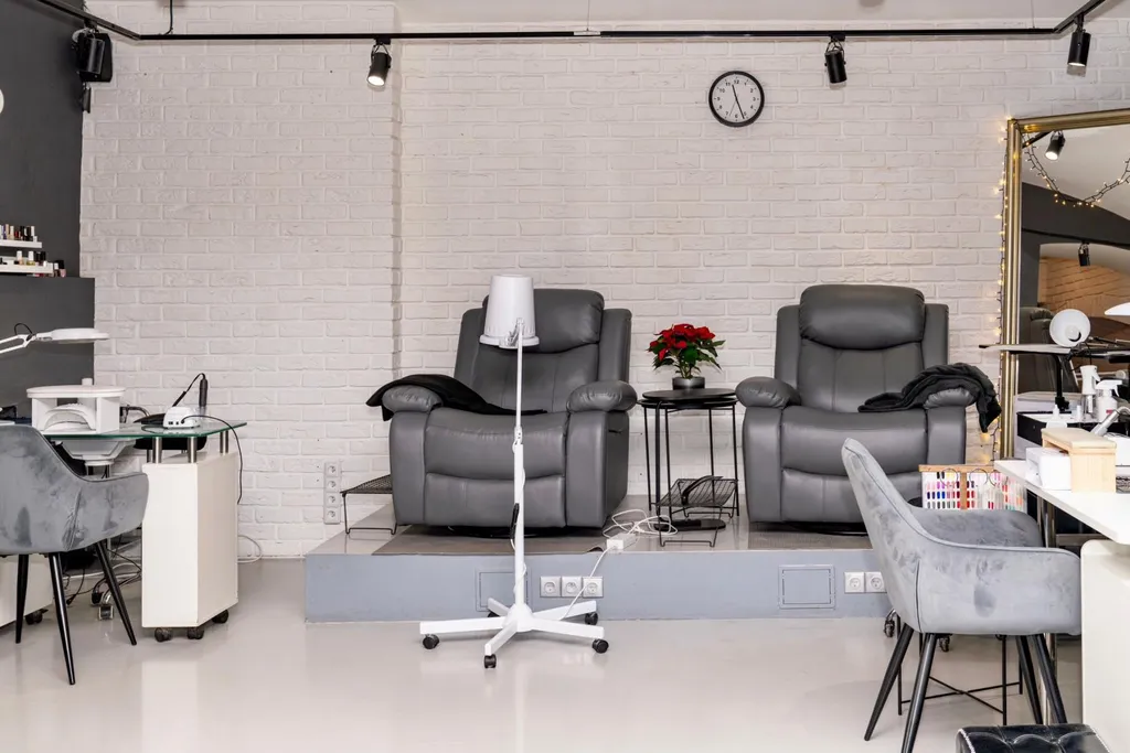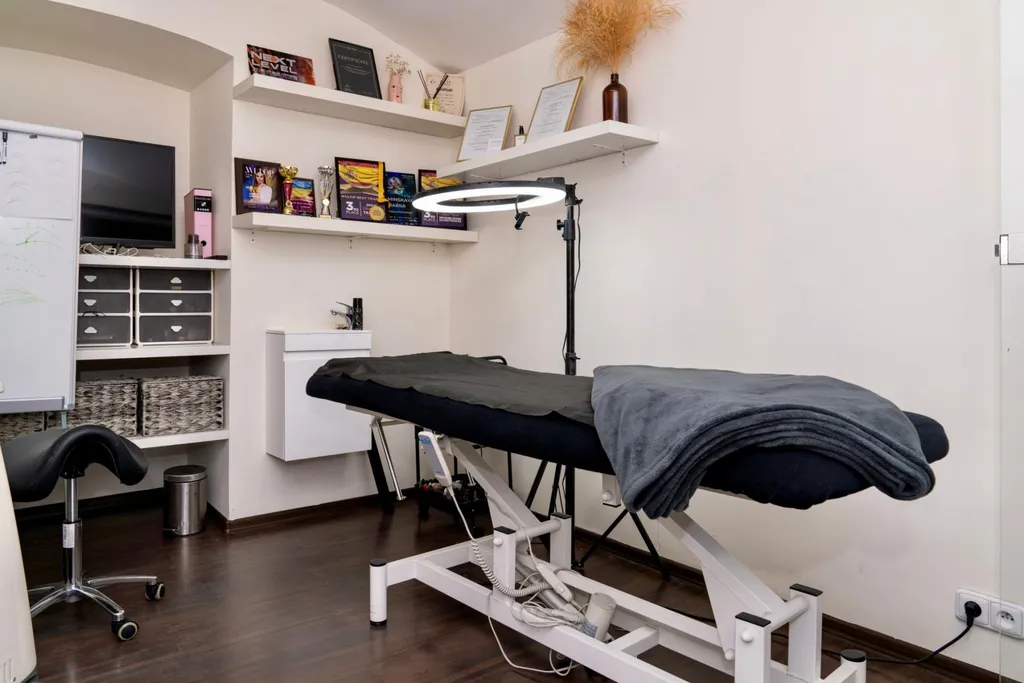 Interiér je moderní a profesionálně zařízený, což vytváří příjemnou atmosféru pro klienty.