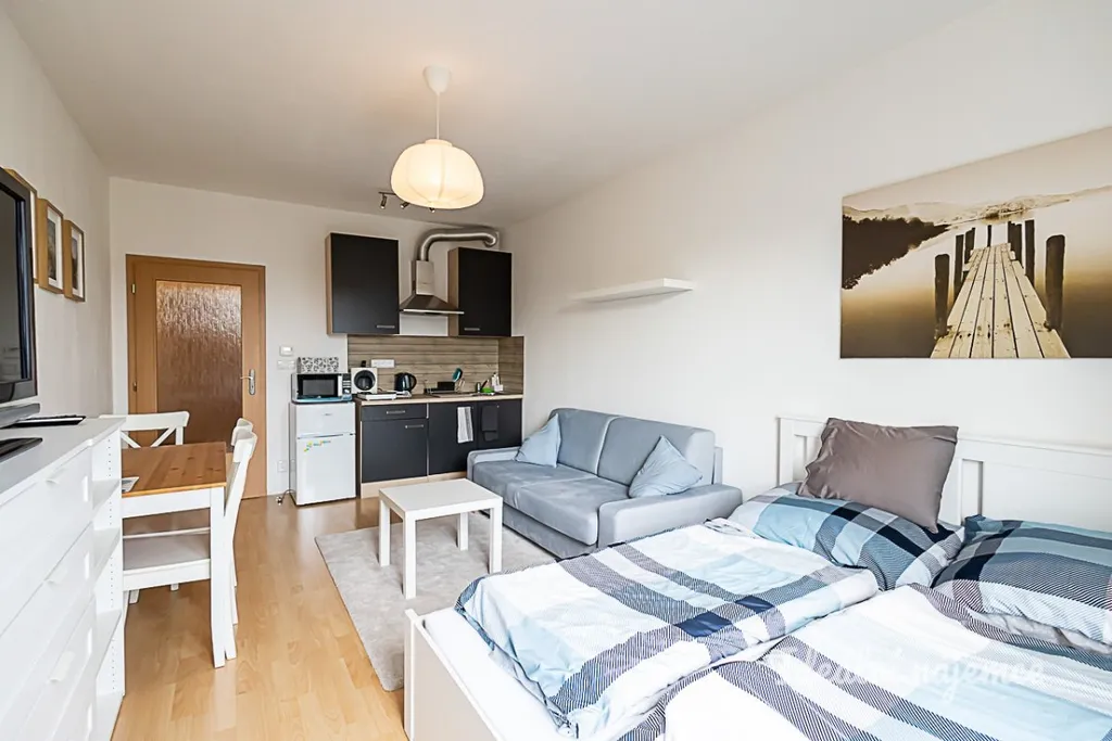 K dlouhodobému podnájmu nabízíme světlý a plně vybavený byt o dispozici 1+kk v klidné lokalitě Praha – Kunratice, v ulici Pod Haltýřem.